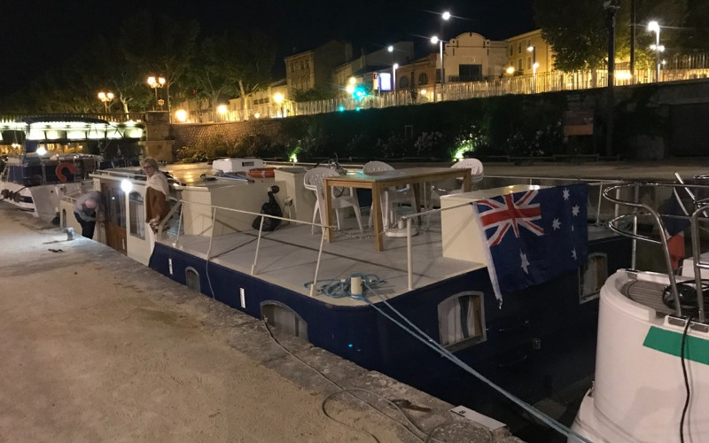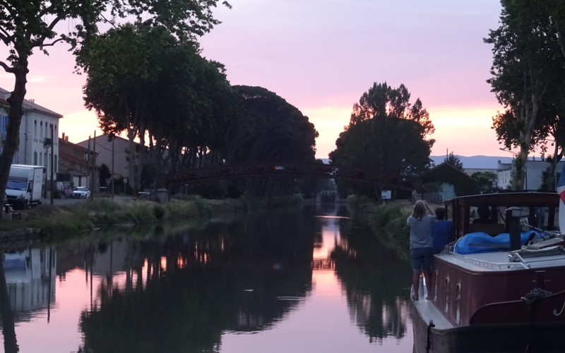 On we went to Salleles d’aude for the evening and found a delightful little cave for a wine tasting (and purchase). No restaurants open so Sue concocted a very nice, never to be repeated, “layered leftovers” meal and we caught a delightful sunset.