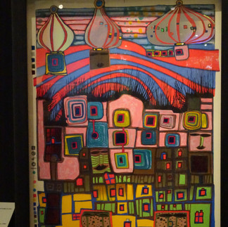 After going to the central station to sort out tickets for our trip to Bratislava (and walking a lot further than necessary looking for a ticket office when Phillip wouldn’t wait for me to look at the ticket machine to find a long queue and we ended up getting the tickets very easily from a machine outside the booking office) we made our way to the Hundertwasser Museum. An interesting quirky building with (very) uneven floors and lots of colourful artwork showing his work over many years.